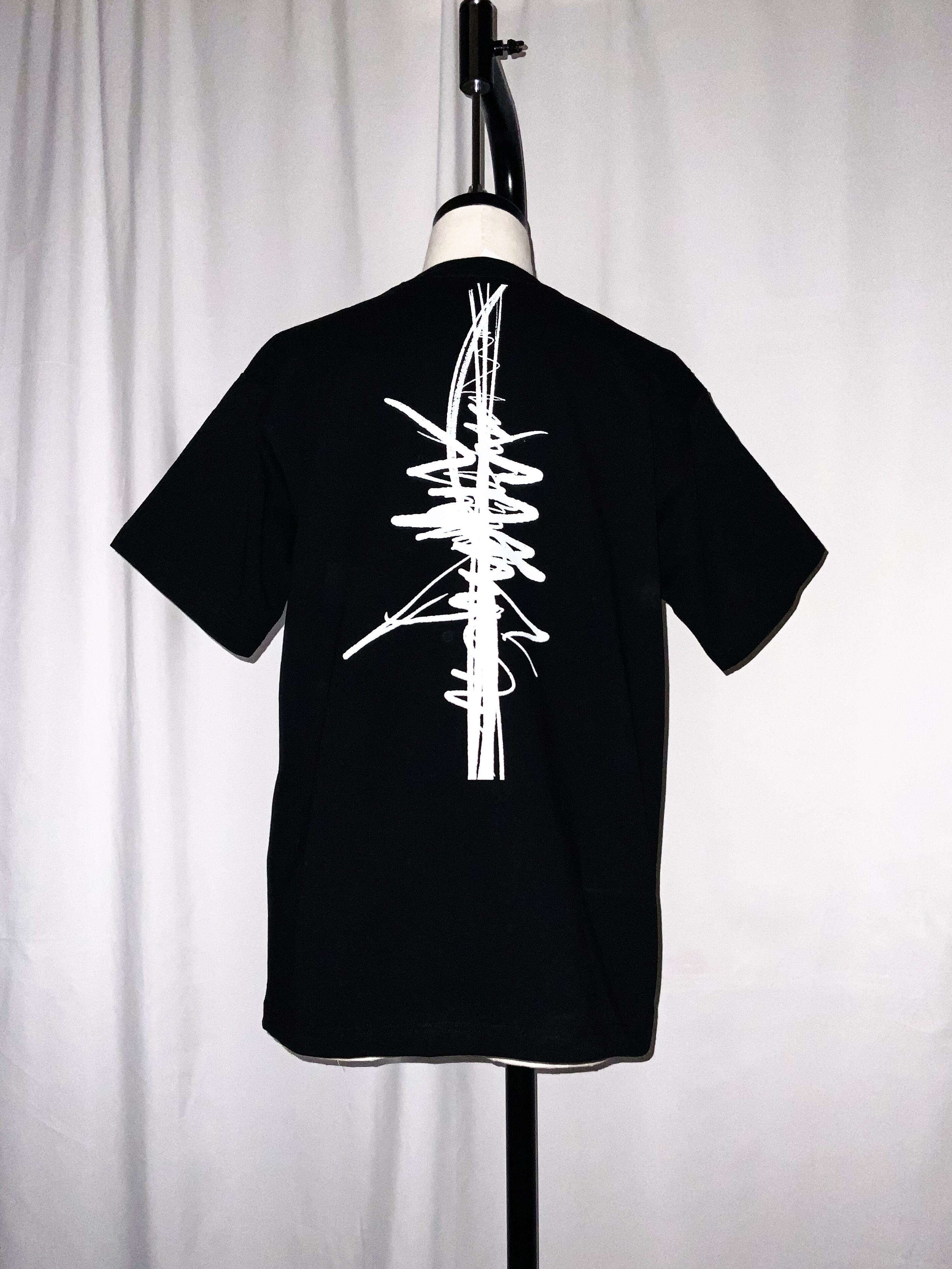 IDのシグネチャージャケット【SPINE STRUCTURE JACKET】の背面ディテールをアブストラクトに描いたTシャツ。